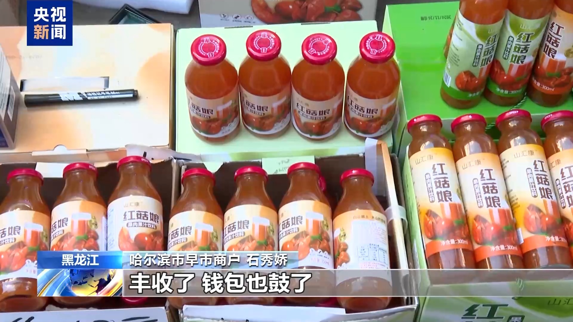 哈尔滨市早市商户 石秀娇:今年大丰收,销量越来越好了,丰收了,钱包也鼓了。