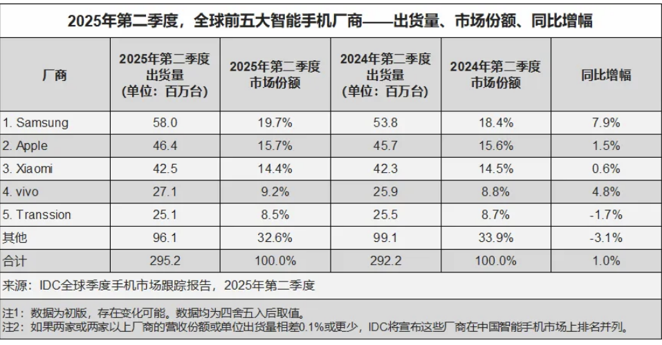 基于IDC公布的2025年第二季度全球智能手机市场出货份额信息,vivo海外市场份额提升明显,全球市场份额同比增幅4.8%,以9.2%的全球市场份额位列第四,成为全球智能手机市场出货量同比增幅最大的中国手机品牌。