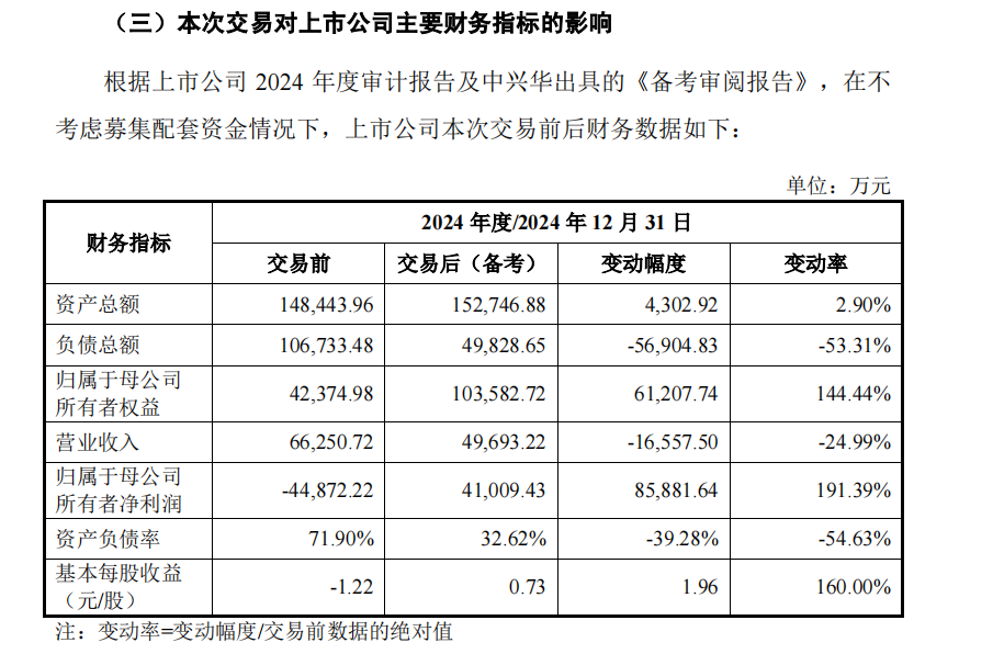 数据显示,交易完成后,南京化纤的营业收入将从6.63亿元降至4.97亿元,但归母净利润将从亏损4.49亿元转为盈利4.10亿元。这也意味着,通过本次交易,南京化纤可以实现扭亏为盈。